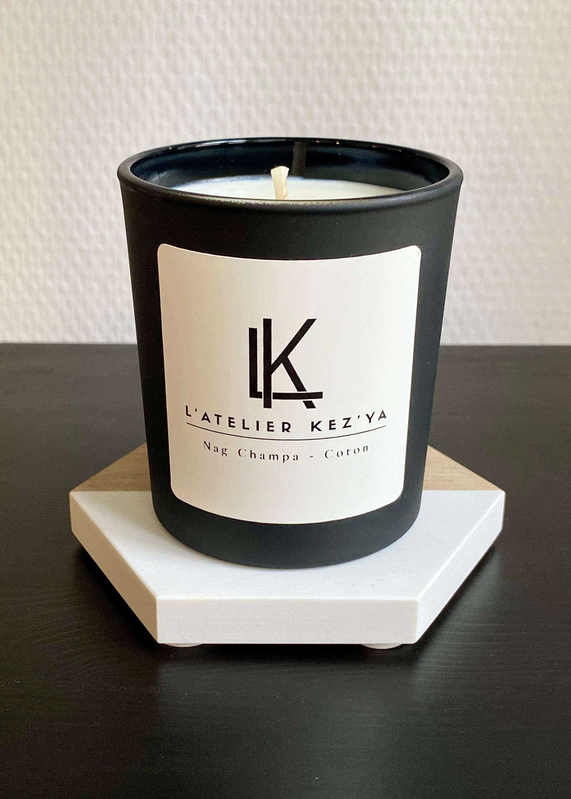 Bougies artisanales fabriquées à la main au sein de mon atelier.